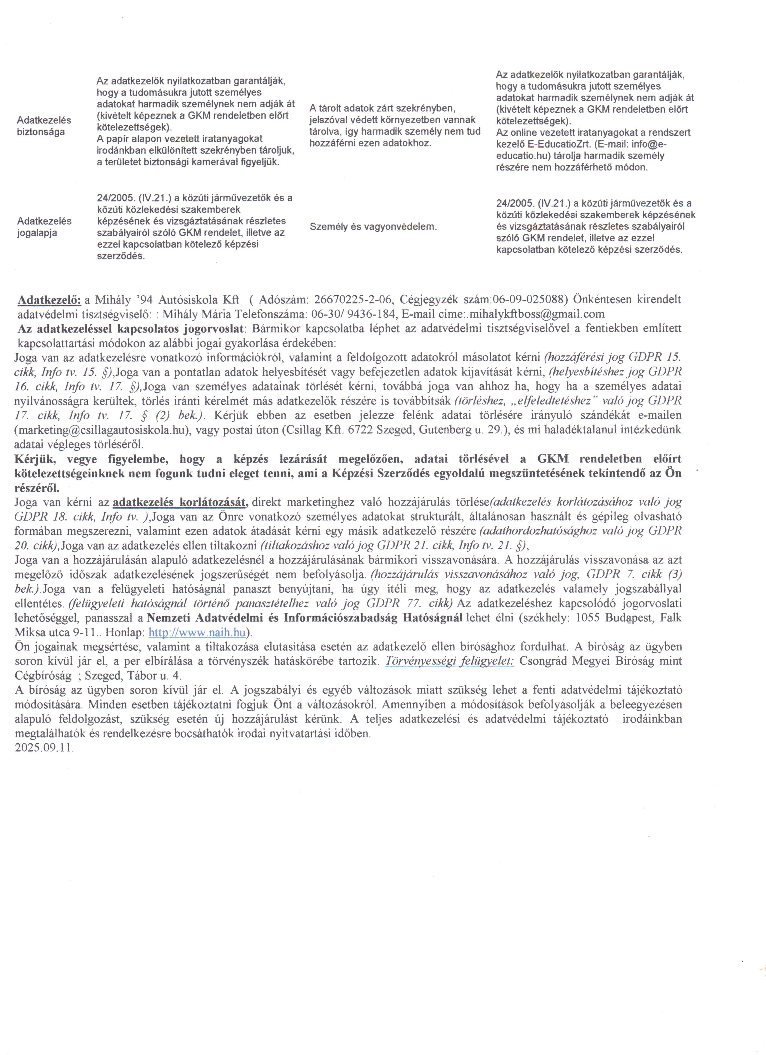 | Mihály '94 Adatkezelési tájékoztató rövid 2025.09.11-2 | 2025-09-15 07:29:34 |